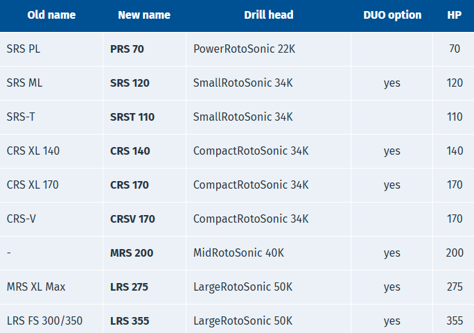 PRS 70, SRS-T110, SRS-120, SRS 120 DUO, CRS 140, CRS 140 DUO, CRS 140 DUO Terramec, CRS 170, CRS 170 DUO, CRS-V170, MRS 200MRS 200 DUO, LRS 275, LRS 275 DUO, LRS 355